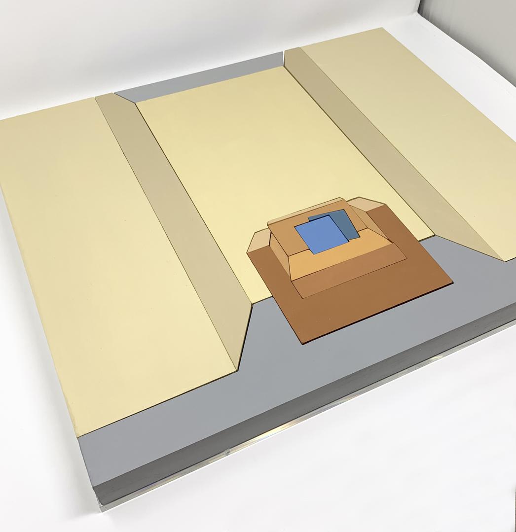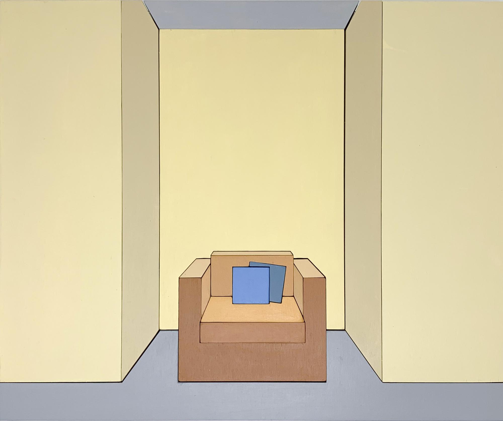My assemblage-paintings are painted wooden blocks, which, when assembled, form representations of interiors. The blocks may be handled and rearranged. This potentially interactive viewer experience is informed by Froebel’s kindergarten gifts, an early childhood education tool, of which I learned through Frank Lloyd Wright’s work. I encountered Froebel blocks for the first time at the Wright Home & Studio, where they were on display. Wright claimed that his childhood exposure to Froebel blocks deeply influenced his approach to architecture, especially regarding geometric patterns and ornamentation. My assemblage-paintings attempt to de- and reconstruct my own compositions, potentially discovering new arrangements, patterns and meanings.