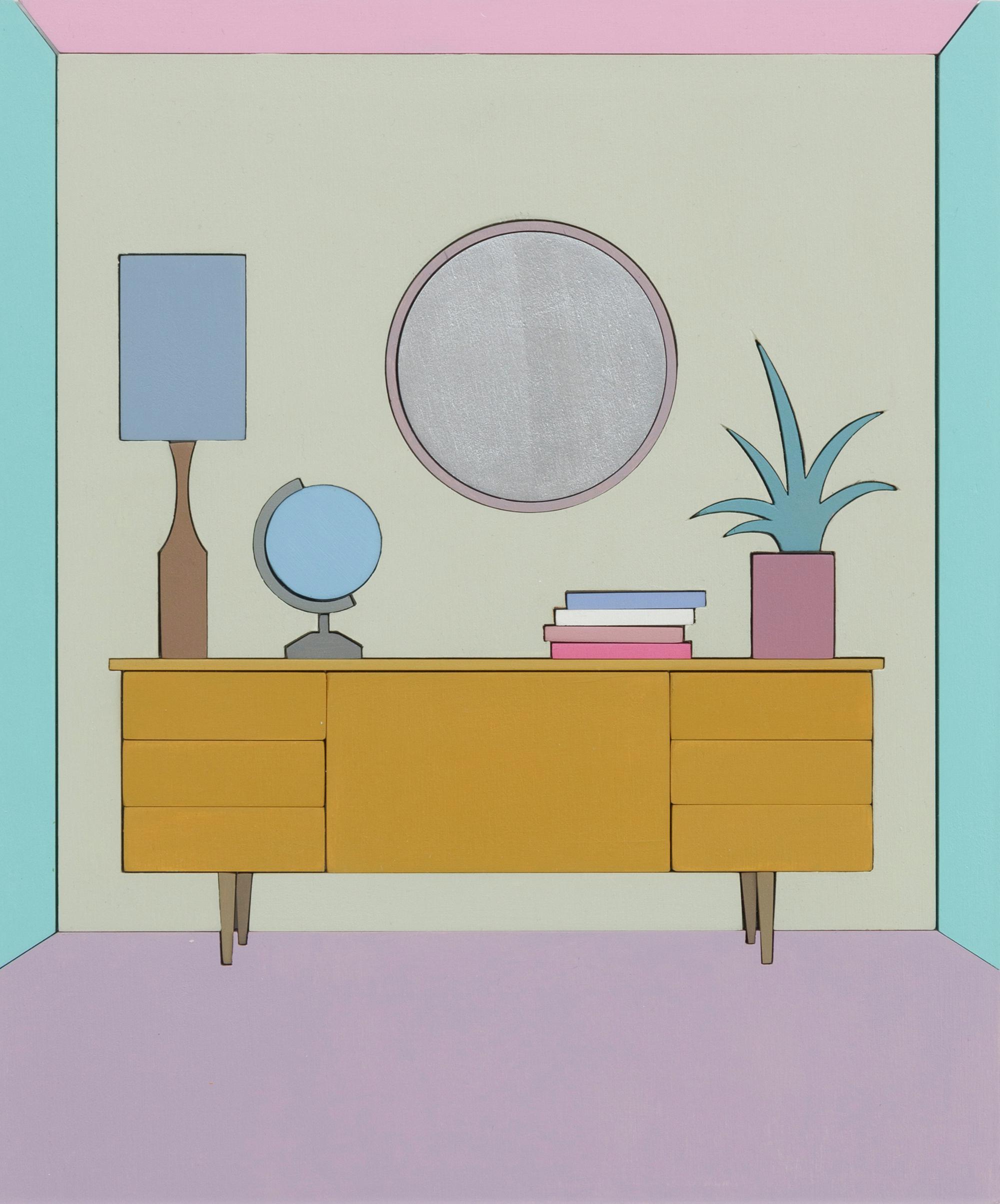 My assemblage-paintings are painted wooden blocks, which, when assembled, form representations of interiors. The blocks may be handled and rearranged. This potentially interactive viewer experience is informed by Froebel’s kindergarten gifts, an early childhood education tool, of which I learned through Frank Lloyd Wright’s work. I encountered Froebel blocks for the first time at the Wright Home & Studio, where they were on display. Wright claimed that his childhood exposure to Froebel blocks deeply influenced his approach to architecture, especially regarding geometric patterns and ornamentation. My assemblage-paintings attempt to de- and reconstruct my own compositions, potentially discovering new arrangements, patterns and meanings.