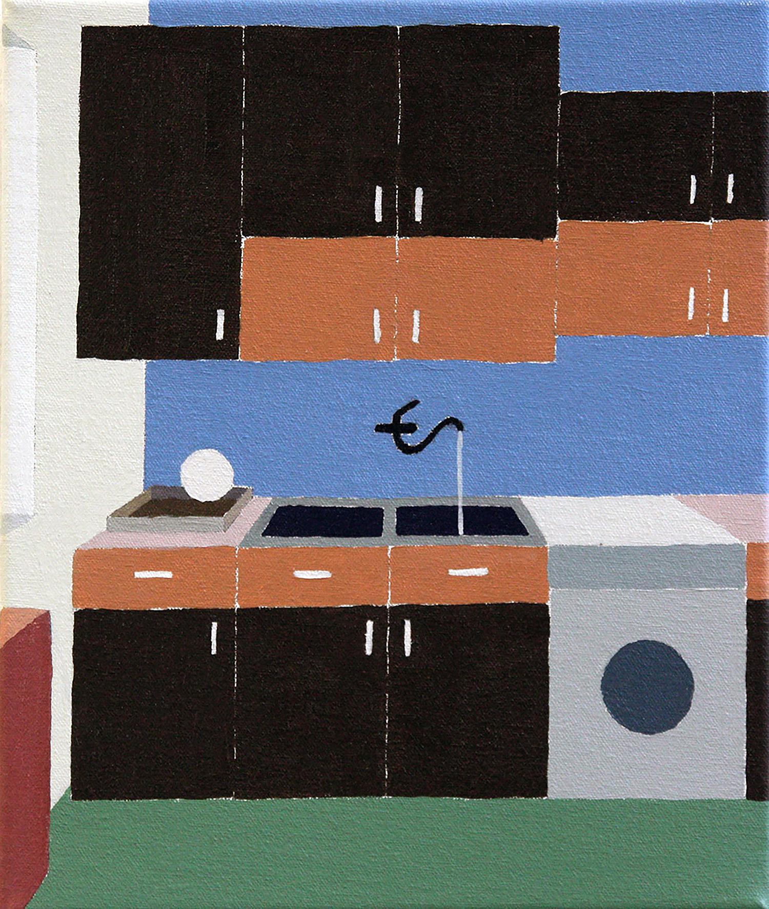 I pair potentially pleasant domestic interiors rendered in possibly seductive colours with a sure sense of alienation expressed by reductive and non-hierarchical paint application. My methodical, controlled approach to technique lets up, however, through touch: my hand trembles where colour blocks meet forming gently wavering lines.  I want always to make paintings that are affecting and alive.