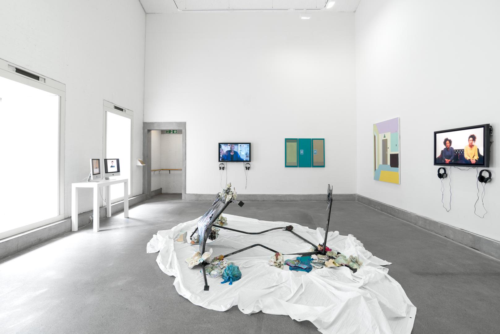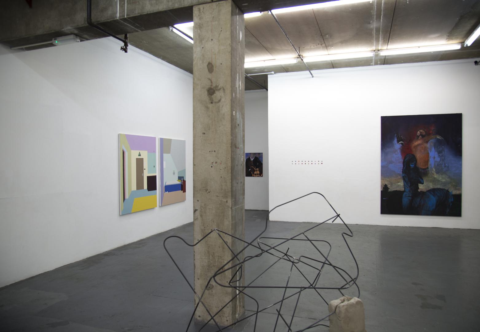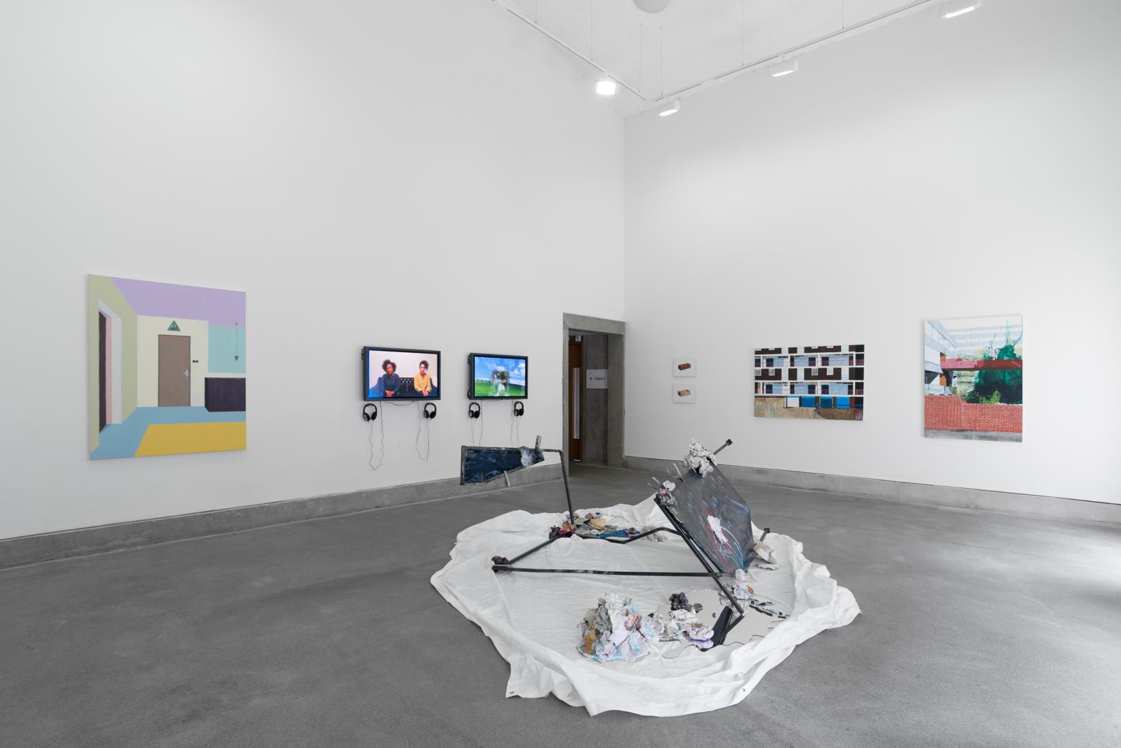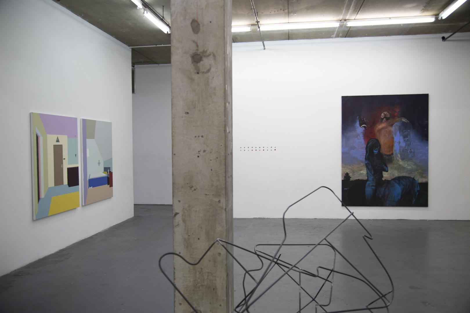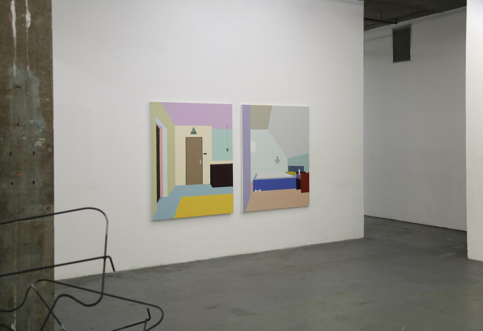 My personal narrative has engendered painterly thinking of absence and presence, stillness and duration, space and flatness, feeling and apathy, cosiness and dread, the private and the social.