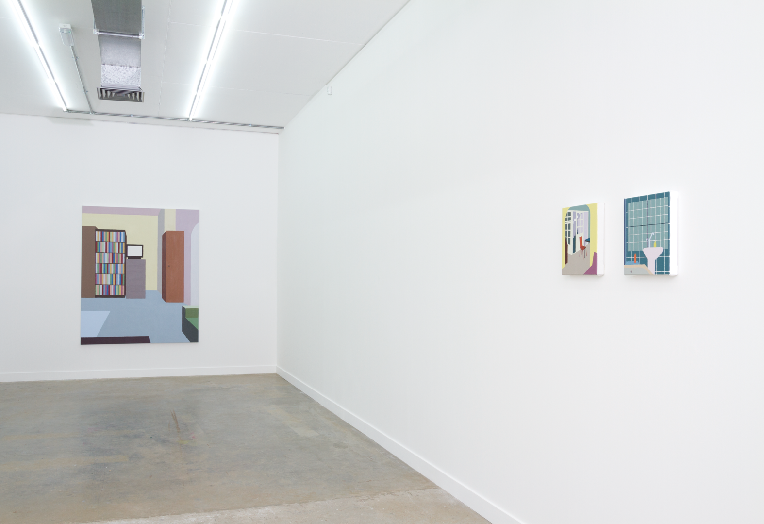 My personal narrative has engendered painterly thinking of absence and presence, stillness and duration, space and flatness, feeling and apathy, cosiness and dread, the private and the social.