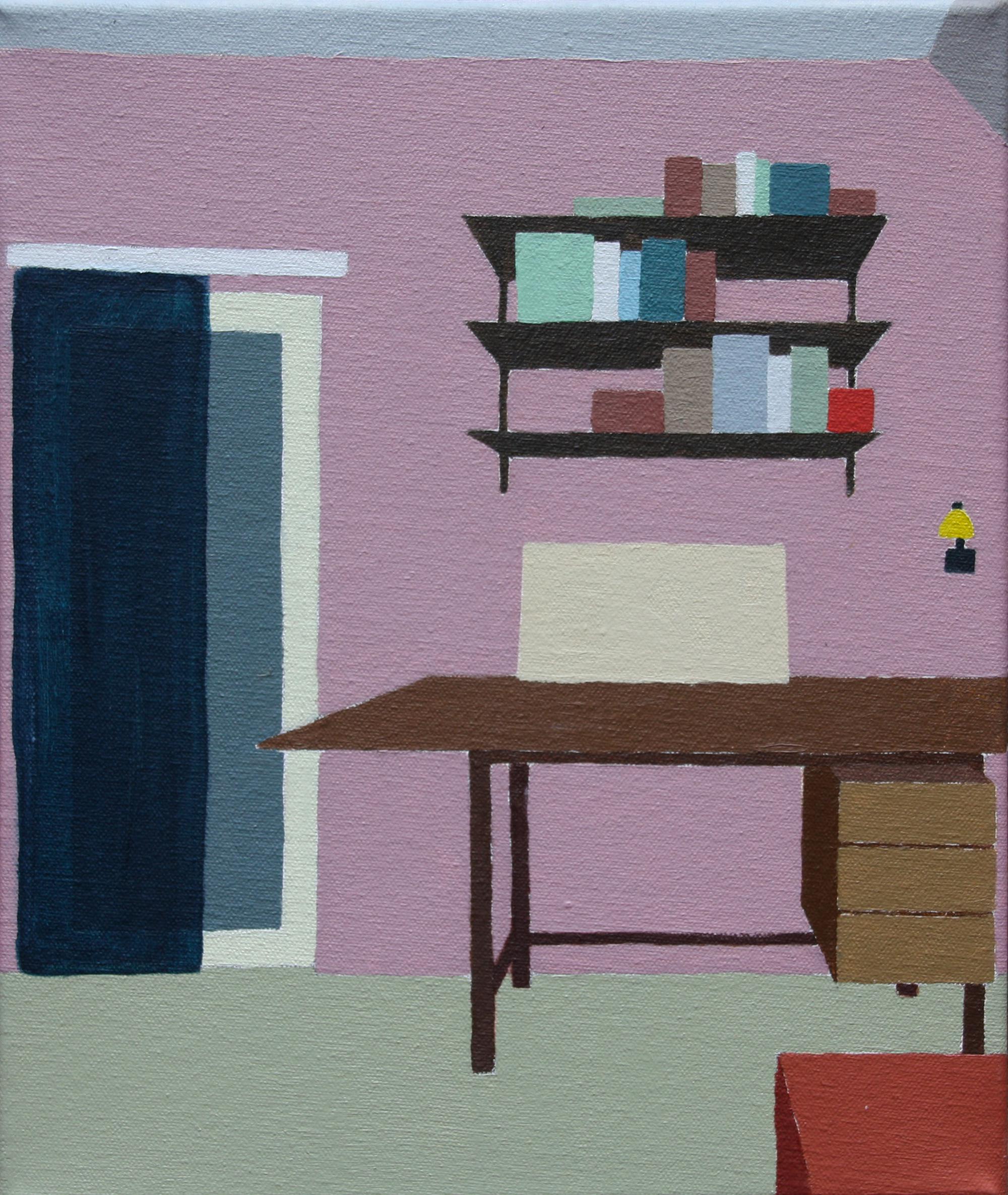 I pair potentially pleasant domestic interiors rendered in possibly seductive colours with a sure sense of alienation expressed by reductive and non-hierarchical paint application. My methodical, controlled approach to technique lets up, however, through touch: my hand trembles where colour blocks meet forming gently wavering lines.  I want always to make paintings that are affecting and alive.