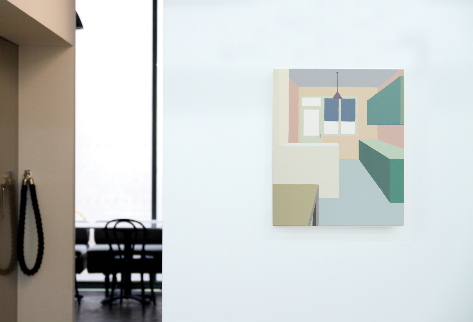 I pair potentially pleasant domestic interiors rendered in possibly seductive colours with a sure sense of alienation expressed by reductive and non-hierarchical paint application. My methodical, controlled approach to technique lets up, however, through touch: my hand trembles where colour blocks meet forming gently wavering lines.  I want always to make paintings that are affecting and alive.