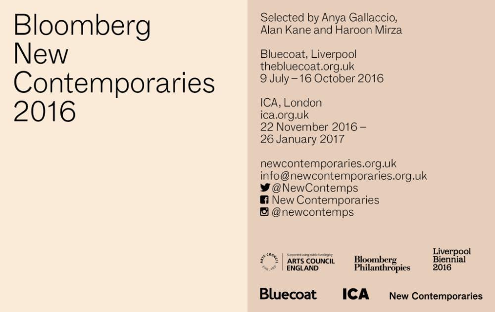New Contemporaries is recognised nationally and internationally as a reliable barometer of future trends in art. Since 1949, New Contemporaries has profiled emerging talent from the UK’s art schools through an annual open submission exhibition. Past exhibitors include Ed Atkins, Helen Chadwick, David Hockney, Chris Ofili and Simon Starling. At Bluecoat, Bloomberg New Contemporaries 2016 features 46 artists chosen by guest selectors Anya Gallaccio, Alan Kane and Haroon Mirza. From Richie Moment’s high octane, satirical videos to Michael Cox’s detailed paintings of urban architecture, Bloomberg New Contemporaries 2016 shows the diverse approaches of emerging artists working today. Social, cultural and environmental changes to the world around us are represented in the show, with artists reflecting on geo-political turmoil, cultural legacies and environmental concerns.